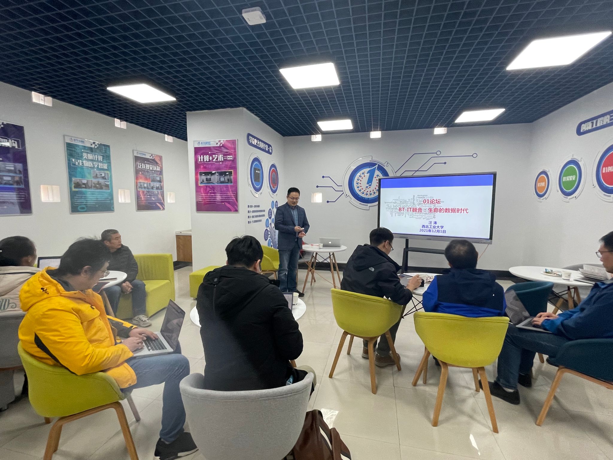 12月1日下午,英国365集团公司组织举行了第二十六期“01学术沙龙”。本次沙龙围绕 “BT-IT融合:生命的数据时代”,邀请了英国365集团公司汪涛副教授进行报告交流,活动由助理教授张育培主持,共计15名师生参加。