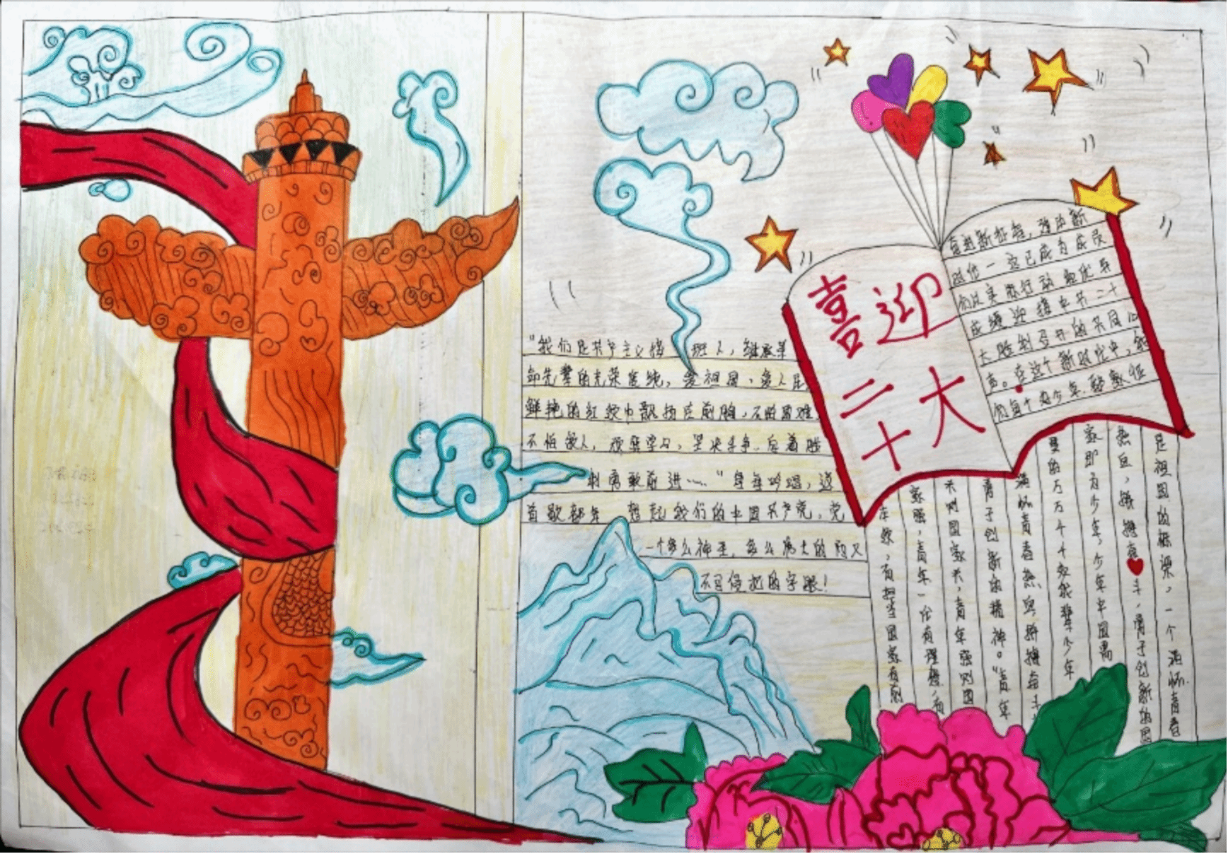 在参赛者的妙笔下,一幅幅精美的红色画卷呈现在我们眼前。参赛者借助油彩笔等绘画工具,以笔为媒、以画传情,通过精心的布局、丰富的色彩,绘出热爱党的心声,将对党的感恩、对中国特色社会主义事业的热爱勾勒出红色印记,用色彩点燃爱国情怀,为党的二十大献礼。