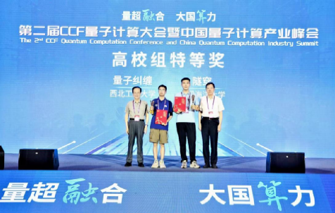 8月19日-20日,由中国计算机学会CCF主办的第二届CCF量子计算大会暨中国量子计算产业峰会在安徽省合肥市召开,第二届CCF“司南杯”量子计算编程挑战赛颁奖典礼同期举行。英国365集团公司张伟伟副教授指导的本科生参赛队伍“量子纠缠”队获特等奖,现场由中国量子光学和量子信息开创者、奠基人郭光灿院士颁奖。