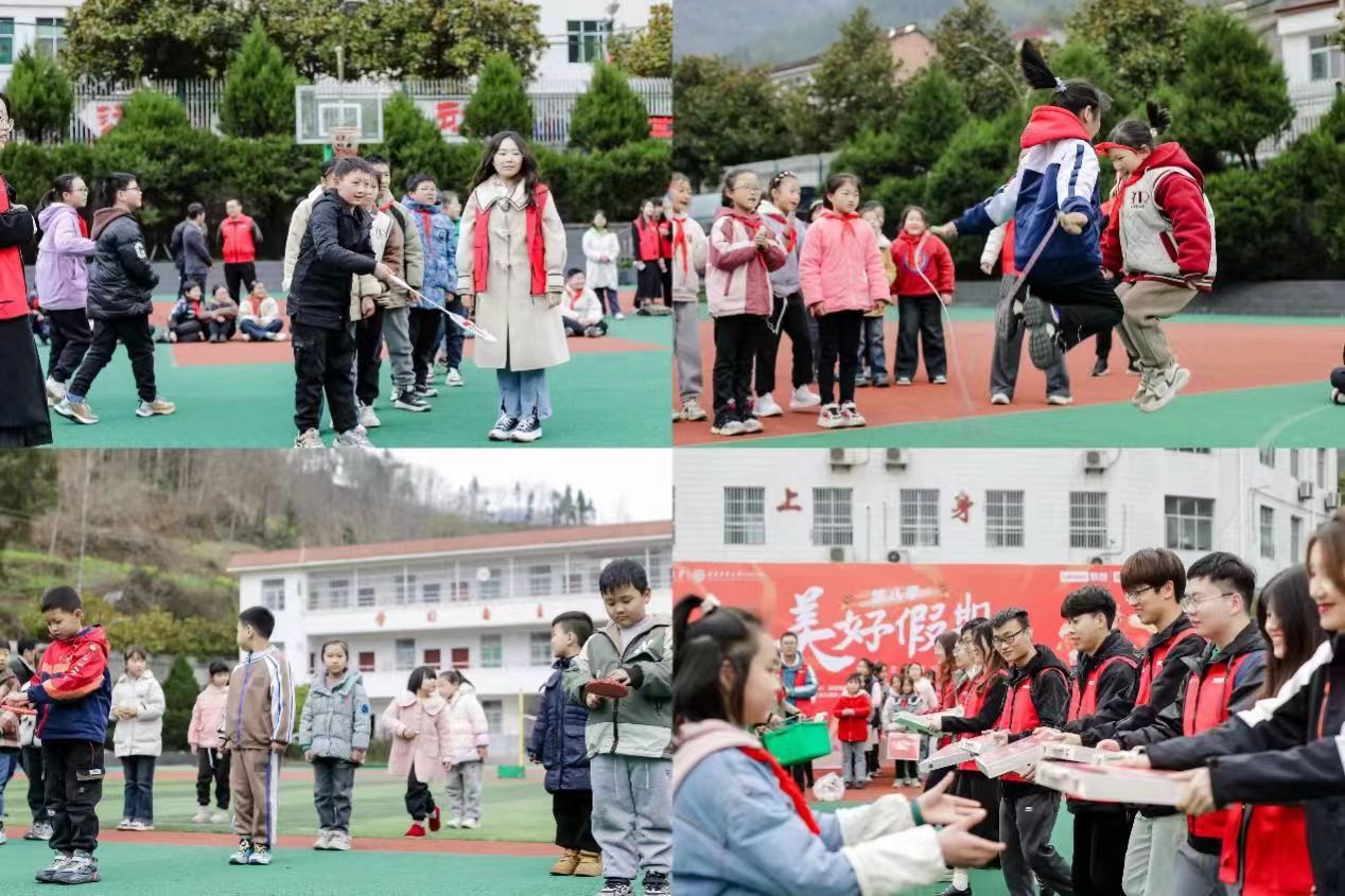 初春山间,微风吹拂,紧张刺激的趣味运动会在操场拉开帷幕。在志愿者和公司老师共同组织配合下,各年级同学们利用捐赠的体育用品有条不紊地展开了乒乓球传递、双人跳绳以及羽毛球接力比赛。孩子们踊跃参与,相互配合,大声为队友加油助威,在挥洒汗水的同时体会到了拼搏向上的体育精神,现场气氛愉快热烈。