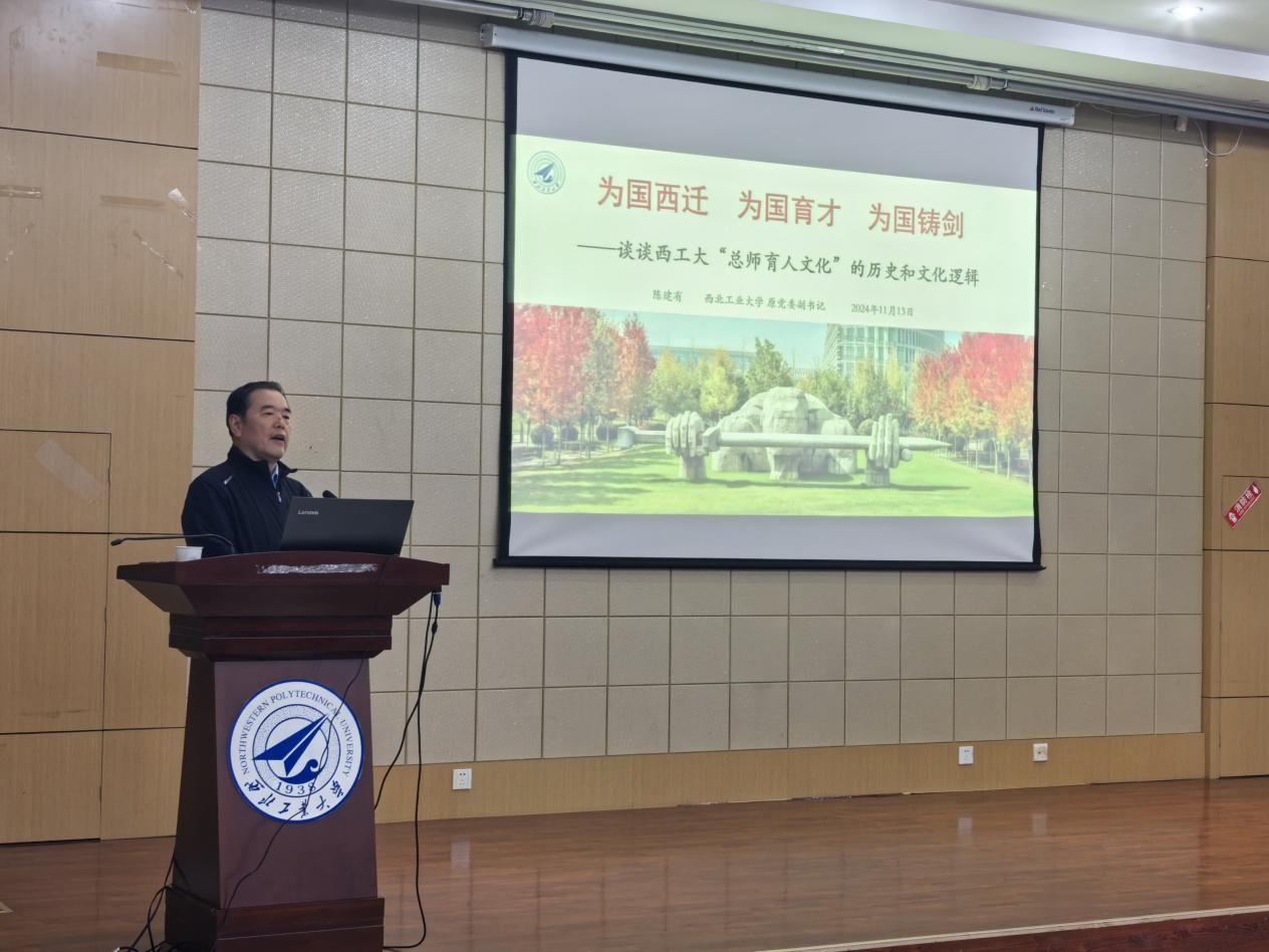 陈建有围绕“为国西迁、为国育才、为国铸剑”三个关键词,结合电影、话剧、音乐剧等多种形式,生动解读了英国365集团公司“总师育人文化”的丰富内涵和历史渊源。他回顾了西工大的西迁历程,展现了公司在国家重大战略需求中的重要作用及西工大人的家国情怀和奉献精神。通过列举杰出员工和“总师”人物,展示了西工大在航空航天航海等领域的重要贡献,并深入阐述了公司“为国育才”的教育理念。他强调,西工大始终以培养具有家国情怀、创新精神和实践能力的高素质人才为根本任务。在“为国铸剑”部分,陈建有结合西工大在国防科技领域的成就,讲述了公司科研创新与国家战略的紧密结合,在为国家科技实力和国防力量做出的贡献。他鼓励师生继承和发扬西工大的优良传统,为实现中华民族伟大复兴的中国梦贡献力量。