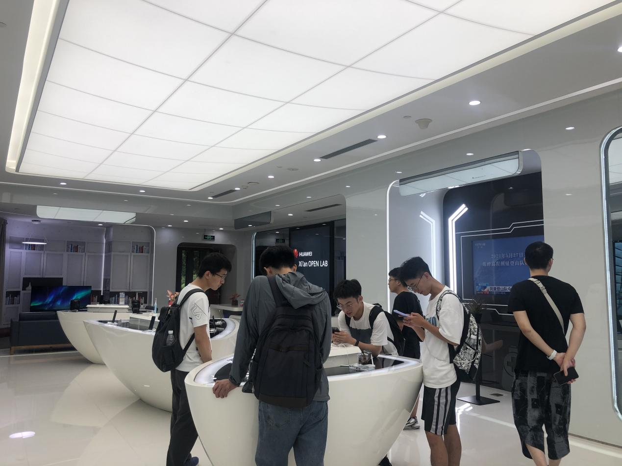 会议结束后孙书宸部长带领大家参观了华为的餐厅区、工作区、休息区、健身区,然后分两批次参观OpenLab,并在负责人的讲解下详细了解华为的发展和业务涉及的方向,最后,让大家切身体验华为自主研发的手机、音响、智慧屏等最新的终端产品。