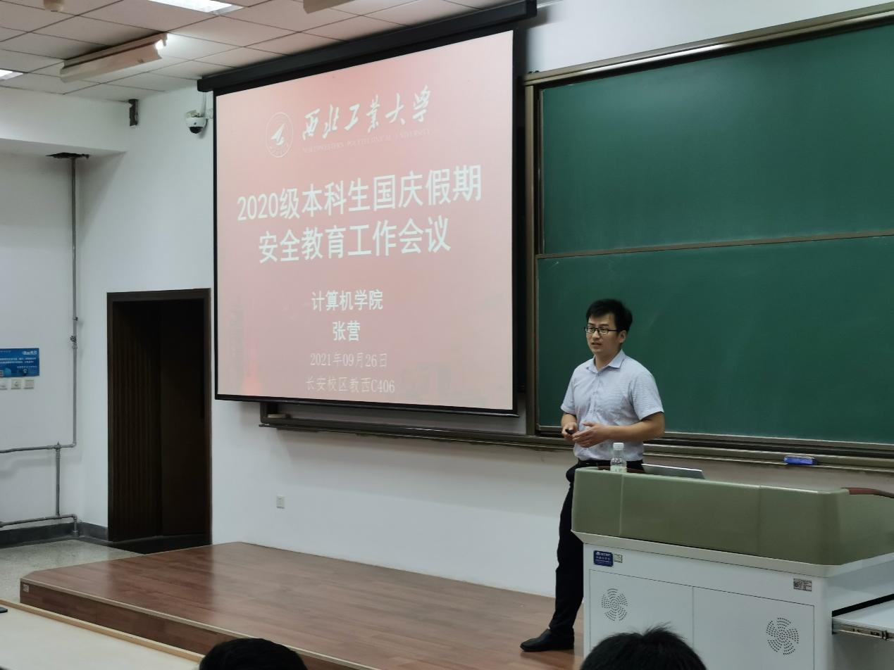 9月26日晚,2020级本科生在教学西楼C406召开了国庆假期安全教育专题班会。辅导员张营从人身安全、交通安全、宿舍安全、网络安全、疫情防控和心理健康等六个方面,结合具体而生动的实例阐述了假期安全工作的重要性,并督促同学们做好假期安全工作,同时叮嘱同学们安全无小事,大家务必时刻保持安全意识。