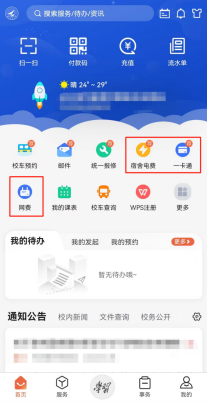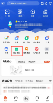 首页即可进入资讯中心,查看通知公告、校内新闻等。