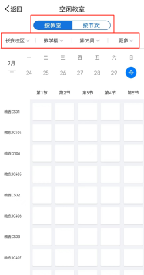 该功能可以帮助大家根据时间选择空闲的课室进行自习。