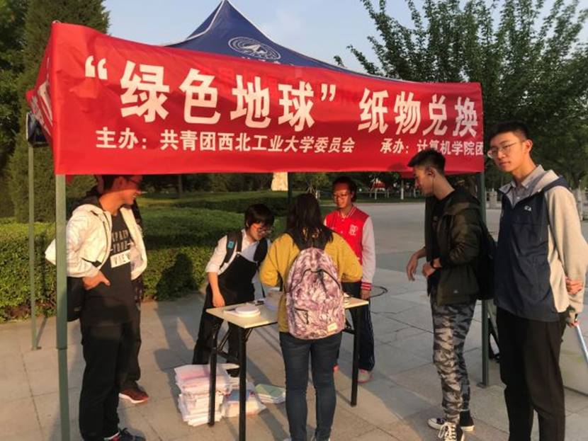 公益志愿类——“绿色地球”纸物兑换活动,定期组织同学前往敬老院、胡燎小学做志愿者等