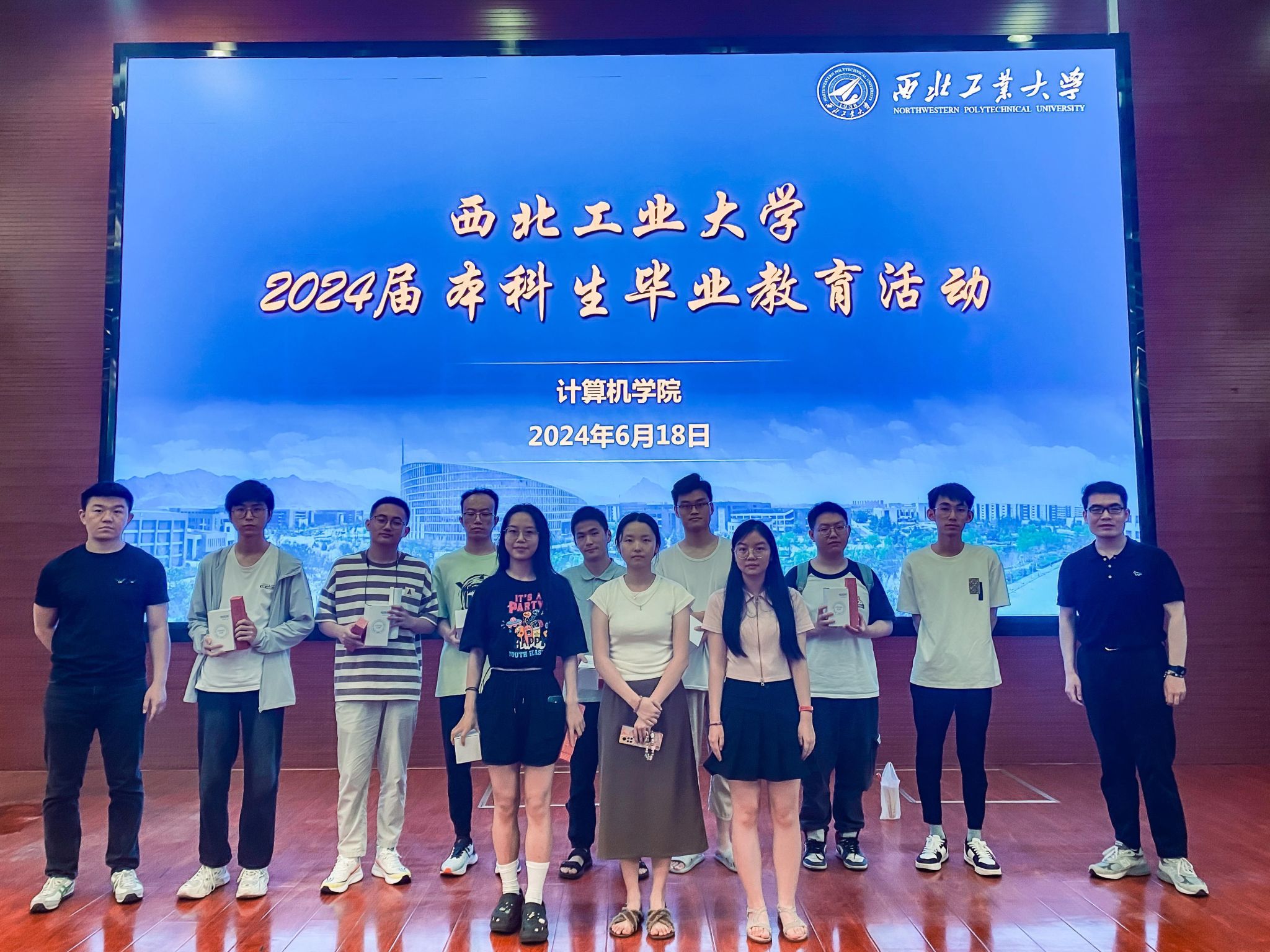 辅导员向同学们发放了毕业纪念品,希望同学们带着公司的期望砥砺前行。