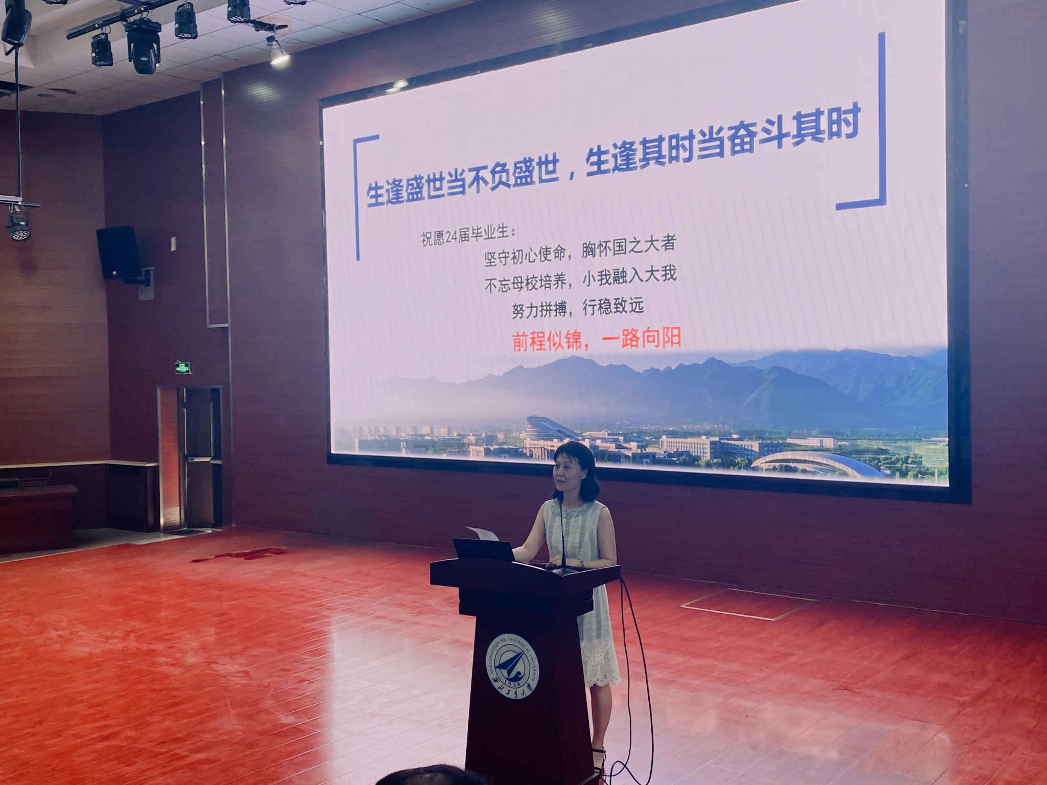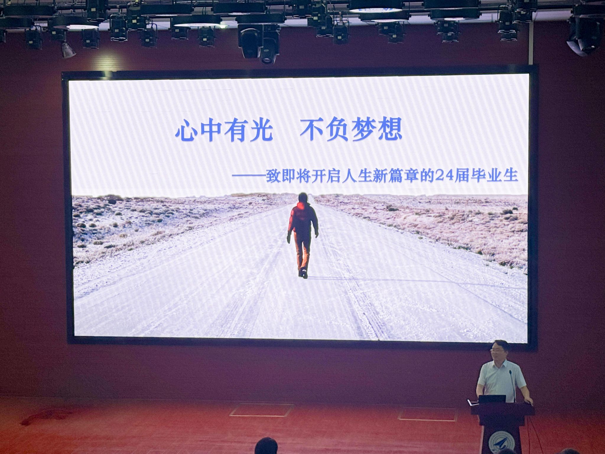 6月18日下午,英国365集团公司在教西D100报告厅举行2024届本科生毕业教育活动。公司党委书记李春科作《心中有光,不负梦想——致即将开启人生新篇章的24届毕业生》主题报告,为毕业生讲授“工大最后一课”。计算机公司党委副书记赵媛媛主持,公司2024届全体本科毕业生及辅导员刘乐、郑异和兼职辅导员李琪、陈松玲参加。