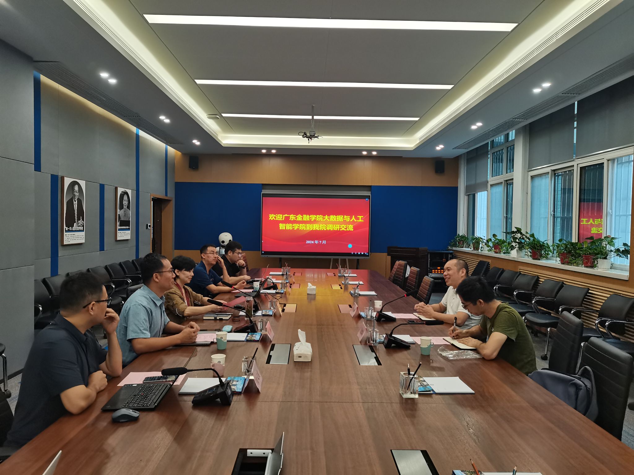 7月15日上午,广东金融公司大数据与人工智能公司执行经理廖文辉、副经理万德焕一行来公司调研,经理尚学群、副经理郭斌出席并参加座谈,会议由尚学群经理主持。
