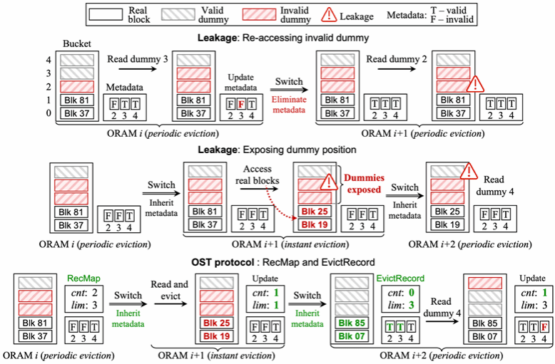 图3:转换过程中的两种泄漏以及OST协议的示意图