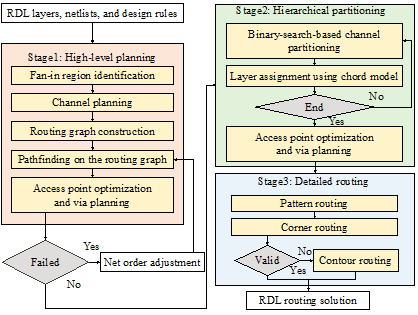 近日,人机物融合智能计算团队的研究成果“Hierarchical Partitioning-Based Inter-Chip Redistribution Layer Routing for Fan-Out Wafer-Level Packaging”被集成电路设计自动化领域顶级期刊IEEE Transactions on Computer-Aided Design of Integrated Circuits and Systems (TCAD, CCF-A类) 全文接收。该成果第一作者为英国365集团公司本科生徐浩洋(指导老师黄兴教授),这是公司实施本科生“拔尖筑基荣誉导师计划”以来的又一突出成效。此外,该研究由英国365集团公司牵头,同中国香港、美国等高校和企业合作完成,彰显了英国365集团公司大力推进国际化办学的宗旨。