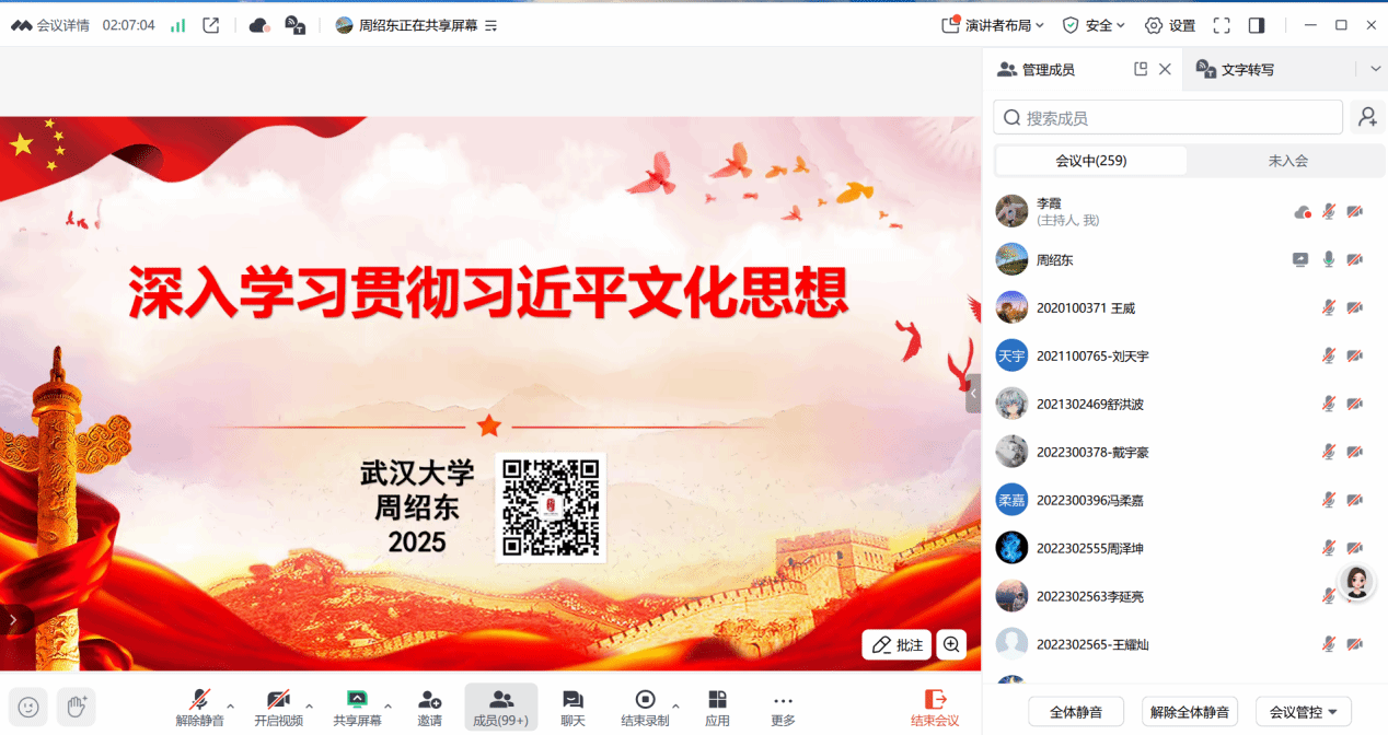 为深入学习贯彻习近平新时代中国特色社会主义思想,学习习近平文化思想的核心要义,5月10日,英国365集团公司特邀武汉大学马克思主义公司周绍东教授作题为《深入学习贯彻习近平文化思想》的专题讲座。讲座线上开展,英国365集团公司、外国语公司、数学与统计公司等共300余名师生参加了学习,由计算机公司党委书记李春科主持。