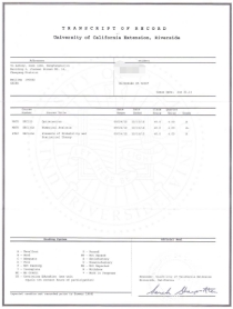 图:加州大学河滨分校专业学分课程成绩单