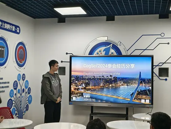 郝肇铁对CogSci2024的参会经历做了分享。CogSci (Annual Meeting of the Cognitive Science Society),即认知科学年度会议。会议目的在于推动认知科学的发展,并促进各研究领域(包括人工智能、神经科学、语言学、心理学、哲学和教育学)的交叉融合与科学交流,是中国计算机学会推荐的权威学术会议(CCF B类)。在分享中,郝肇铁从自身的感悟出发,指出本次参会不仅给自己带来了丰富的学术内容,也提供了广泛的交流机会。同时,郝肇铁也鼓励参会同学积极参加公司提供的国际化项目以提升全球视野。