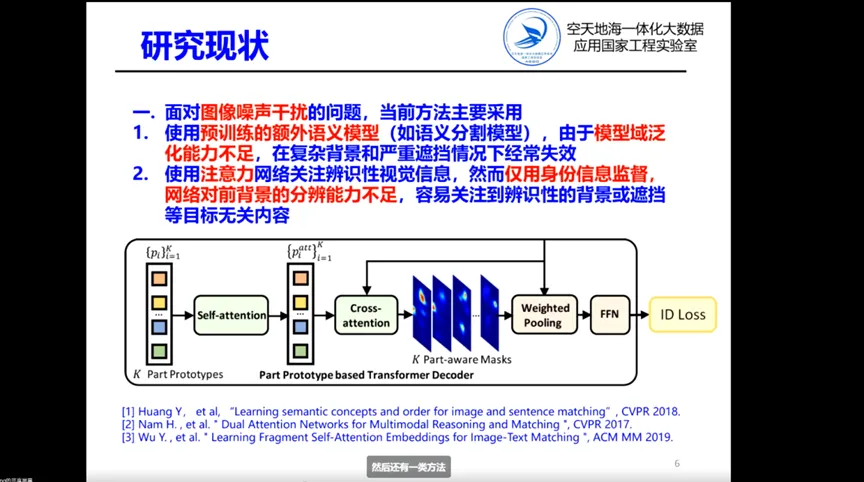高丽颖分享的主题是基于文本信息的细度图像检索方法。这是一项利用自然语言描述从图像库中检索特定图片的技术,在社会治安和经济领域有着重要运用。然而这个技术在目前也有图像噪声干扰视觉目标信息提取、跨模态部件对齐困难等两个挑战。针对图像噪声干扰的问题,高丽颖分别从视觉和文本角度介绍了基于视觉语义引导下辨识信息提取的文图检索算法和基于文本知识引导下辨识信息提取的文图检索算法。而对于跨模态部件对齐难的问题,高丽颖介绍了基于文本偏向引导下跨模态部件对齐的文图检索算法。