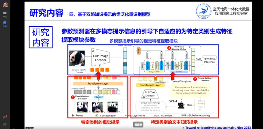 矫炳亮分享的主题是开放世界目标重识别技术研究。开放世界目标重识别技术是一种应对开放环境中对象识别和跟踪的前沿研究方向,旨在解决实际场景中动态、多样、甚至未知目标的识别挑战。这项技术在智能监控、自动驾驶、生态领域等方面具有重要意义。在真实环境中,目标重识别模型受到数据标注的困难性,拍摄视角多变性,应用环境复杂性等因素影响,导致模型的识别精度和泛化能力不足。对此,在报告会上,矫炳亮介绍了基于预训练模型后增强的无监督重识别算法、基于弱监督的跨视角特征学习和基于双路知识的类泛化重识别模型等方法。
