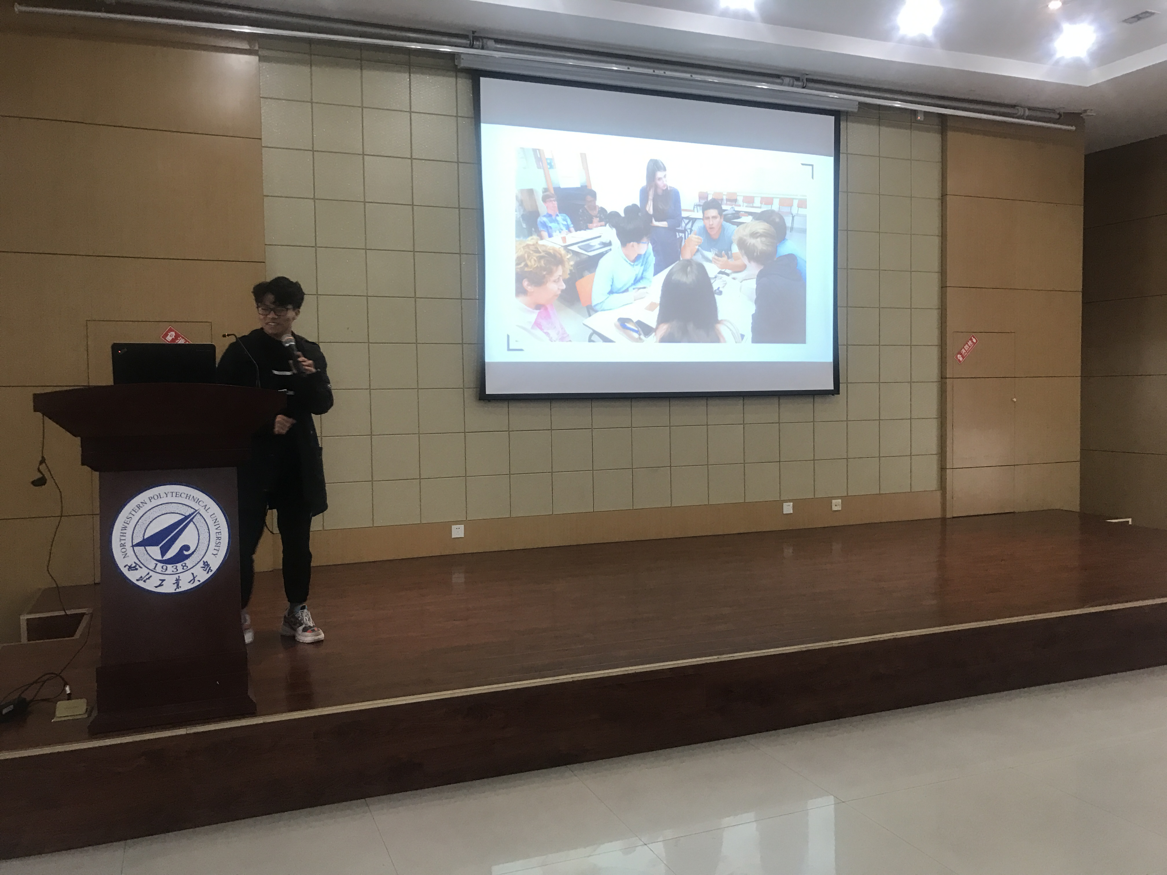 为了使大家更好的了解在国外学习的情况,往期交流同学吴瑞祺在会上分享了在荷兰特文特大学的学习经历和收获,并对公司基本情况与课程进行了详细介绍,鼓励大家接触西方国家在学术和教育方面的先进之处,开拓眼界、提高自我。